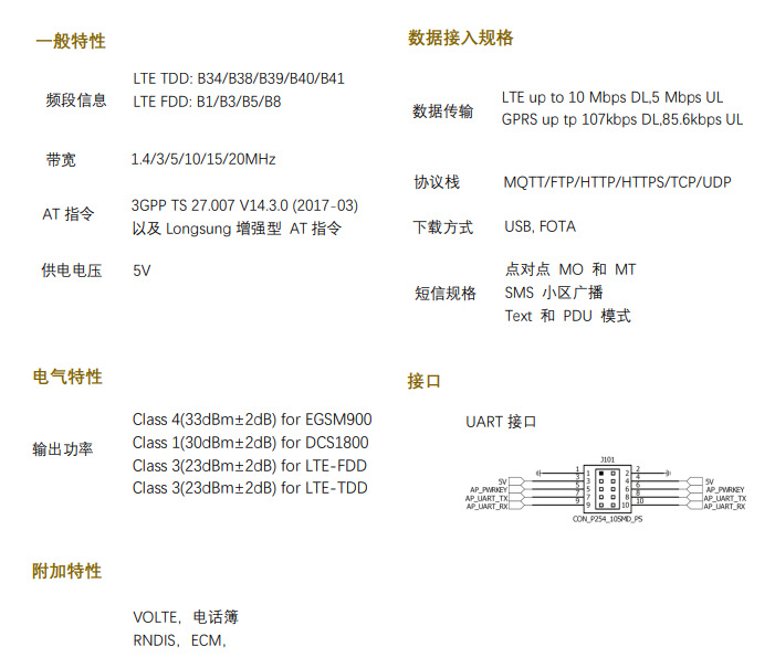 支持3GPP TS 27.007 V14.3.0 (2017-03)AT指令以及 Longsung增强型 AT指令