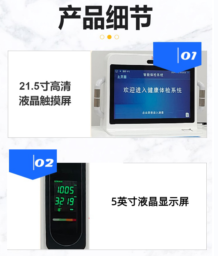 触控屏设计:21.5英寸高清液晶屏显示检测结果,5英寸副屏实时展示体检进度,界面简洁直观。