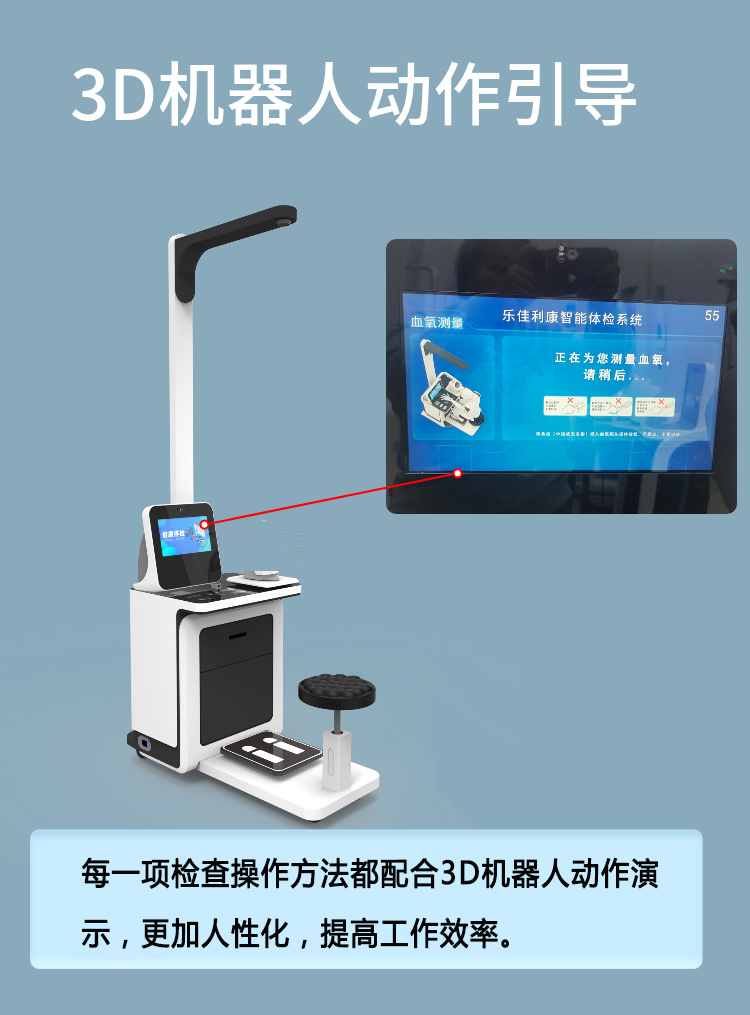 HW-V3000 是乐佳利康(河南乐佳电子科技有限公司)推出的智能互联全自动体检一体机,集成了多项健康检测功能,适用于医疗机构、社区健康服务中心、企业健康管理、学校等场景。其核心优势在于全自动化检测流程、高精度传感器技术、智能数据分析以及云端数据管理,可为用户提供一站式健康体检服务。