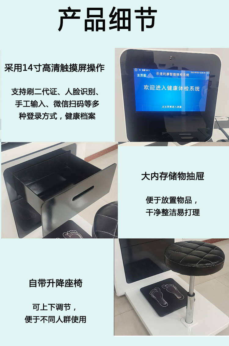 功能全面性:覆盖基础生理指标、人体成分、专项检测(如心电、中医体质),远超普通体检设备。
