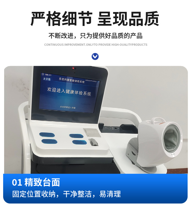 健康管理设备自助智能体检一体机HW-V1000是一款集成多种健康检测功能的智能化医疗设备,由河南乐佳电子科技有限公司研发生产,适用于医院、体检中心、社区、养老机构、健身场所等场景,以下从功能特点、技术参数、操作体验、应用场景、价格与五个方面进行详细介绍: