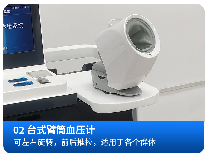 血压计臂筒支持前后伸缩、左右旋转,适应不同体型用户;高速热敏打印机换纸方便,可自定义单位名称、电话等信息。