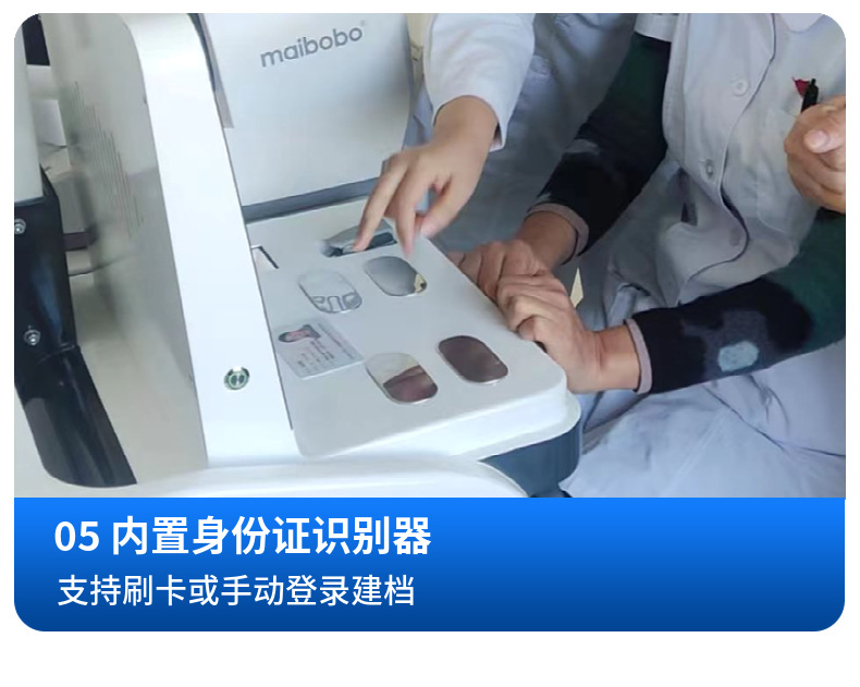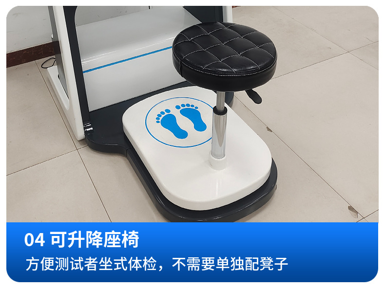 设备自带座椅,支持自助式操作,现场无需医护人员指引,降低使用门槛。