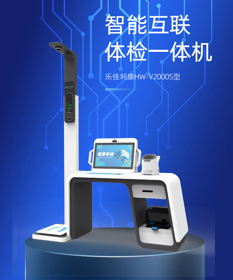 HW-V2000S台式公卫体检一体机是河南乐佳电子科技有限公司推出的一款集多种健康检测功能于一体的智能设备。它采用先进的生物监测技术和传感器技术,能够实现对身高、体重、血压、心率、血氧饱和度、体脂率等多项生理指标的检测,为用户提供全面的健康评估。
