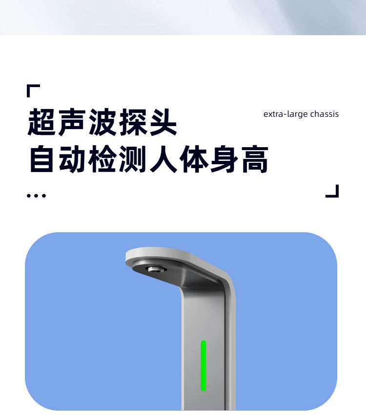 采用超声波探头与高精度梁式压力传感器,身高测量范围达0-210cm,分度值0.1cm;体重测量范围1-500kg,分度值0.1kg。