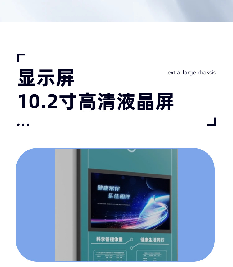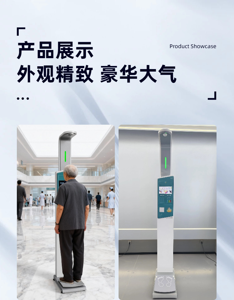 配备10.2寸高清触摸屏,支持3D动画引导操作,用户站立即可触发自动测量,全程语音播报提示步骤,非人员也能轻松完成检测。