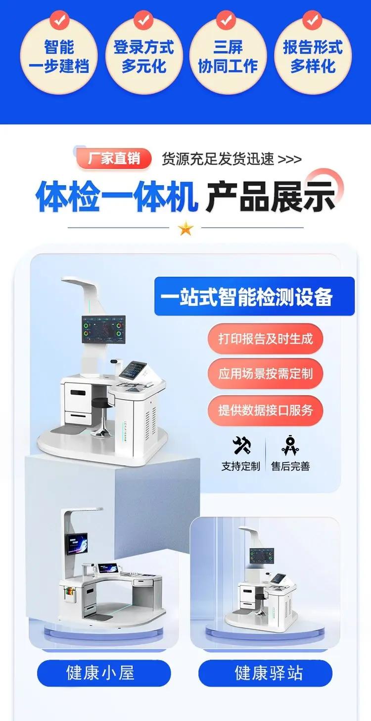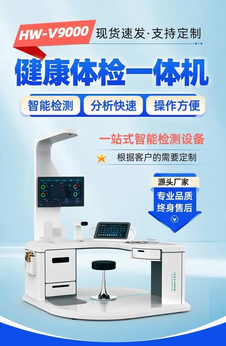 大型体检设备HW-V9000健康检查智能体检一体机是一款功能全面、的大型体检设备,适用于养老院、健康小屋、社区卫生等场景,能够提供高效、的健康管理服务。以下是对该设备的详细介绍: