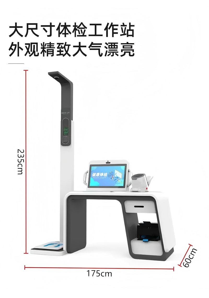 健康驿站体检一体机智能体检设备HW-V2000S是一款功能全面、智能化程度高、适用于多种场景的健康检测设备,具备高精度检测、便捷操作、数据智能管理、智能互联等优势,但价格相对较高。 以下是详细介绍: