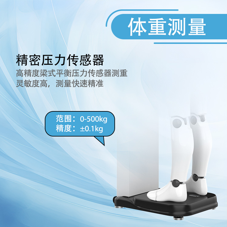 体重测量:配备高精度平衡梁式压力传感器,测量范围1-500KG,支持大体重人群使用。
